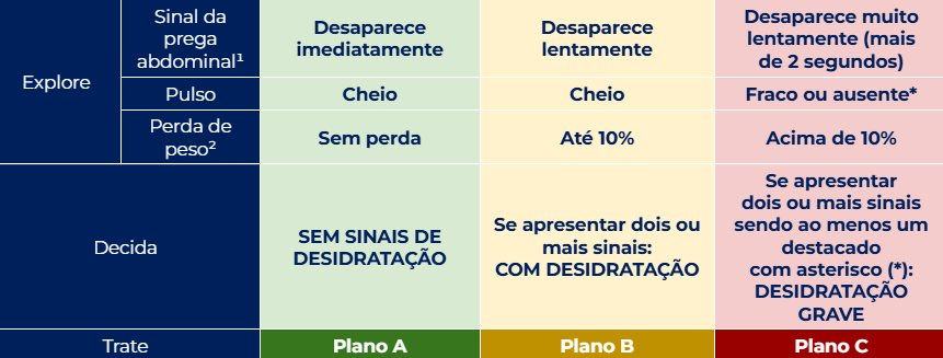 Indicado quando há 2 ou mais sinais da tabela de desidratação da coluna B.