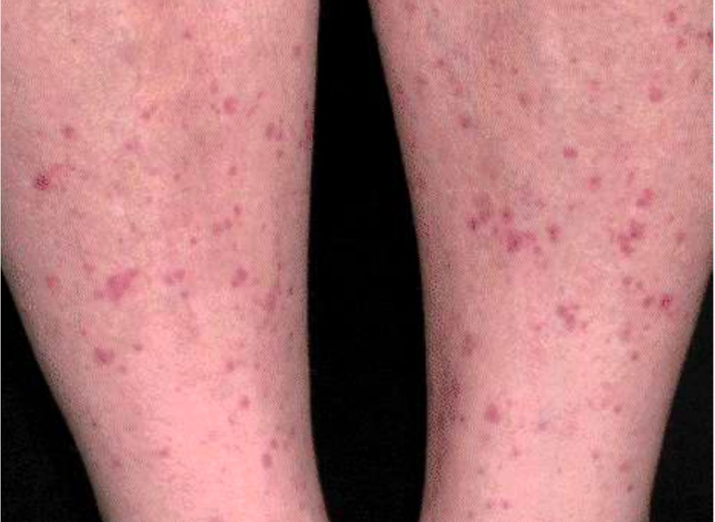 Pode apresentar variantes clínicas como exantema, quando disseminado e agudo, ou enantema, quando localizado em mucosas.
