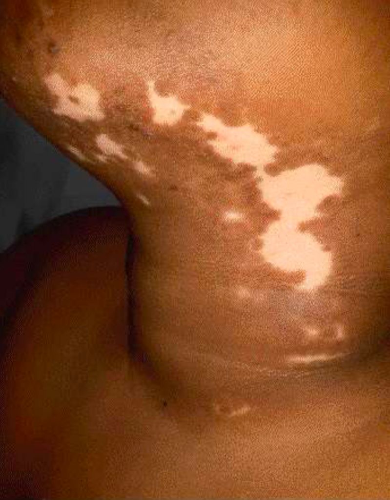 As manchas pigmentares podem ser acrômicas, quando há ausência de melanina; hipocrômicas, quando ocorre diminuição; ou hipercrômicas, quando há aumento de pigmento melânico.