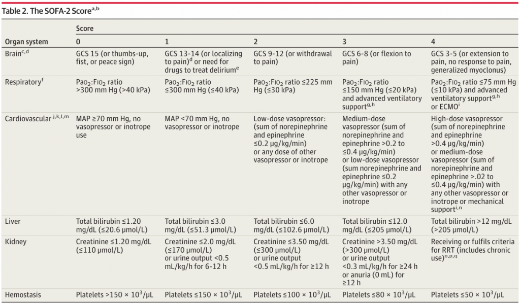 Singer M, et al. The Sequential Organ Failure Assessment version 2 (SOFA-2): development and validation of an updated organ dysfunction score for critical illness. JAMA, 2025.